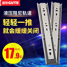 固特不锈钢阻尼轨道液压缓冲抽屉导轨 阻尼三节轨滑轨静音导轨