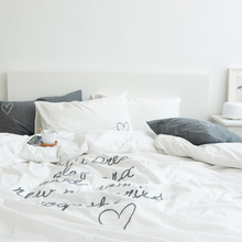 水洗棉四件套刺绣 英文绣花白色被套 简约床笠床单小清新文艺床品