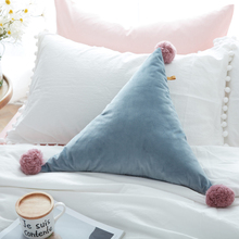 出口欧美手工毛线球抱枕 北欧三角形纯色靠垫ins沙发装饰抱枕含芯