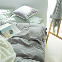 水洗棉四件套小雏菊绣花 日系全棉简约被套床上用品 纯色刺绣床品