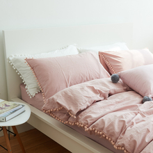 全棉可爱球球水洗棉四件套 日式纯棉裸睡纯色床品床单床笠款套件