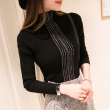 新款秋冬女装半高领修身针织衫套头长袖打底衫亮丝中领短款毛衣女