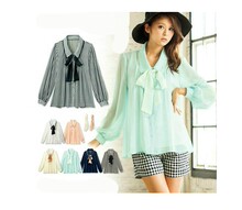 2014外贸原单 甜美 清新雪纺日系 双层领系带 衬衫 衬衣 新款上市