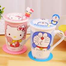 创意哆啦A梦叮当猫陶瓷杯子马克杯情侣杯水杯牛奶杯咖啡杯带盖勺