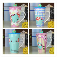 创意陶瓷马克杯卡通杯大容量早餐杯 带硅胶盖公仔水杯情侣陶瓷杯