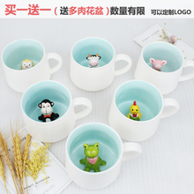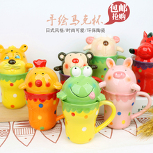 创意陶瓷动物马克杯 儿童卡通水杯手绘3D立体咖啡杯情侣早餐杯