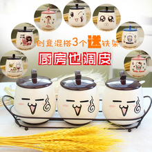 陶瓷调味罐套装 创意可爱表情调料品罐盐罐三件套装厨房调料盒
