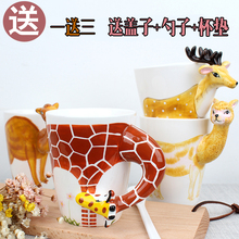 创意陶瓷3D动物马克杯咖啡套装带盖长颈鹿杯子情侣对杯礼品茶杯