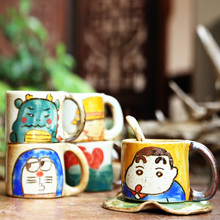 个性陶土杯子纯手工马克杯带碟咖啡杯陶瓷勺子手工杯子包邮