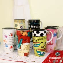 大容量 创意情侣马克杯 带盖杯子 水杯对杯 欧式彩绘陶瓷杯定制