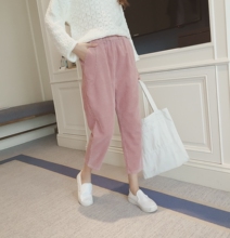 2016秋装新款韩版学生灯芯绒哈伦裤女小脚裤宽松休闲长裤九分裤子