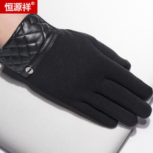恒源祥秋冬季户外保暖男士手套韩版防风加厚骑车开车男触摸屏手套