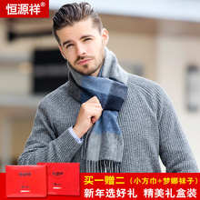 恒源祥羊毛围巾秋冬保暖男士英伦格子围脖加厚披肩 经典流行百搭
