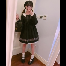 【森女想去海边】音符少女软妹可爱黑白色可爱复古娃娃领连衣服