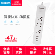 飞利浦USB插座排插大U智能充电插排3位家用电源插线板接线板包邮