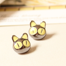 回馈 出口电镀卡通黑猫耳钉可爱大眼睛猫头耳饰无耳洞耳夹女