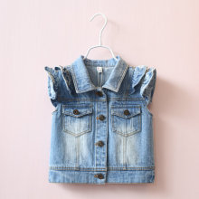【特价】女童飞袖马甲春季外贸童装宝宝百搭荷叶领牛仔坎肩背心