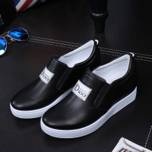 2017春季内增高小白鞋皮面帆布鞋女单鞋拉链韩版潮女休闲乐福鞋女