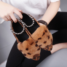 2016秋冬新款韩版单鞋女毛毛鞋平底尖头豆豆鞋脚环串珠休闲女鞋潮