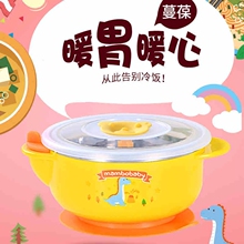 蔓葆儿童餐具不锈钢注水保温碗婴儿辅食碗吸盘碗带盖宝宝碗勺套装