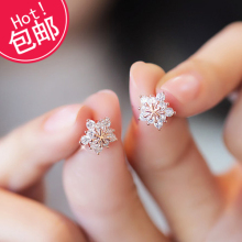 韩国雪花女的耳钉925纯银甜美耳环气质无耳洞耳夹简约水晶耳饰品
