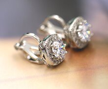 气质夸张菱形假耳钉女士日韩国时尚流行饰品水钻猫眼无耳洞耳环夹