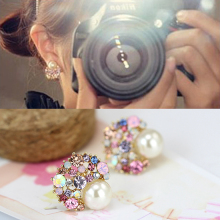 包邮韩版时尚饰品 无耳洞皇冠珍珠耳钉满钻耳环 女士夸张耳钉耳夹