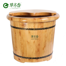 草木香柏木足浴桶36加高泡脚桶木质洗脚桶足疗带盖泡脚木桶节水型
