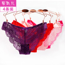 4条礼盒装 性感内裤 女士蕾丝透明诱惑 棉档低腰大码三角裤