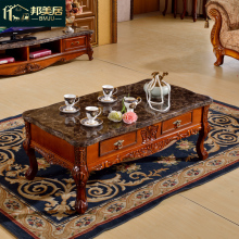 邦美居 美式乡村大理石茶几实木雕花茶桌客厅欧式茶台储物茶几