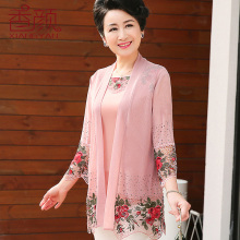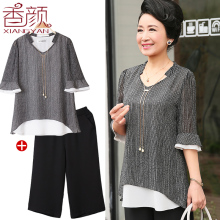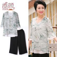 香颜妈妈装春装两件套雪纺衫中老年女装夏装七分袖上衣2017新套装