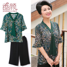 香颜妈妈装夏装套装40-50岁中老年女装夏季两件套短袖上衣服装