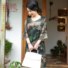 香颜中老年女装夏装真丝连衣裙40-50岁妈妈装中长款桑蚕丝裙子