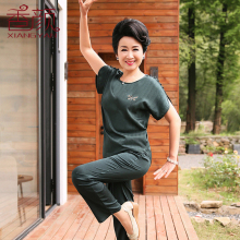 香颜妈妈夏装套装七分袖中老年女装T恤休闲新款裤子两件套夏季