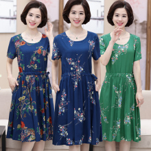 中老年人女装短袖连衣裙夏季40-50岁中年人妈妈装夏装裙子中长款