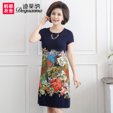 迪葵纳中老年女装夏装新款时尚裙子中年妈妈装连衣裙WQ5390沣