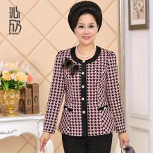 中老年小西装中年女装春装妈妈装秋装长袖千鸟格外套短款老人上衣