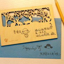小二班森林小屋木质创意镂空复古木明信片感恩节情人生日贺卡片