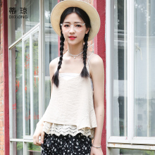 蒂琼韩版2017夏季新款宽松蕾丝吊带背心女装外穿短款性感交叉上衣