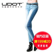 右道侧缝渐变水洗磨毛紧身铅笔牛仔裤女小脚裤2016秋装新款UU6081