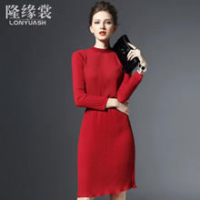 隆缘裳女装冬装2016新款潮名媛气质修身黑色包臀荷叶边连衣裙0721