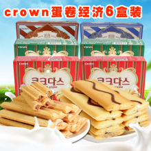 韩国进口零食品 crown巧克力榛子威化夹心蛋卷饼干6盒装