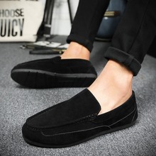 夏季懒人一脚蹬透气磨砂皮男士休闲套脚社会人精神小伙百搭豆豆鞋