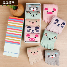 5双装礼盒袜 韩版袜子女 中筒袜潮 五指袜女卡通秋冬棉袜吸汗袜子