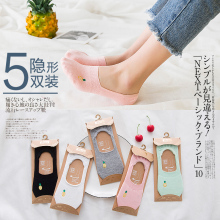 5双装 菠萝刺绣 船袜 女 隐形袜 浅口 配豆豆鞋 夏季 硅胶防滑