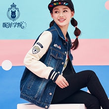 妮菲学院春秋装学院风休闲拼接少女初高中学生牛仔卫衣外套女开衫