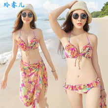 女泳衣聚拢大胸小比基尼三件套游泳衣女分体平角裙式沙滩温泉泳装