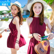 2017新款女连体裙式平角泳衣小胸聚拢保守遮肚沙滩比基尼温泉泳装