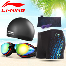李宁游泳裤 男士泳衣套装平角泳裤防水泳镜泳帽 温泉泳装游泳套装