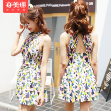 亦美珊温泉泳衣女 小胸聚拢分体保守遮肚显瘦 韩国学生裙式游泳衣